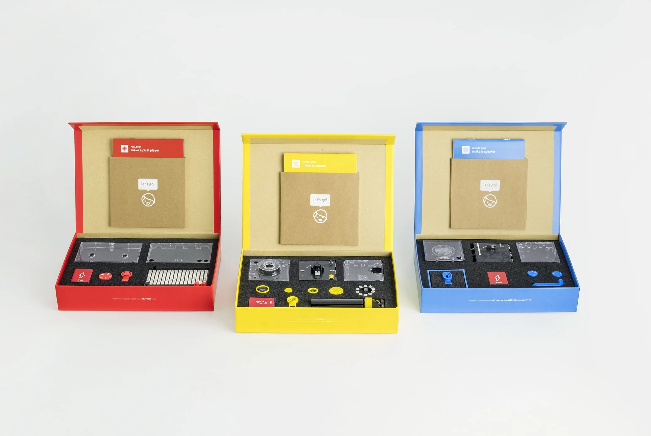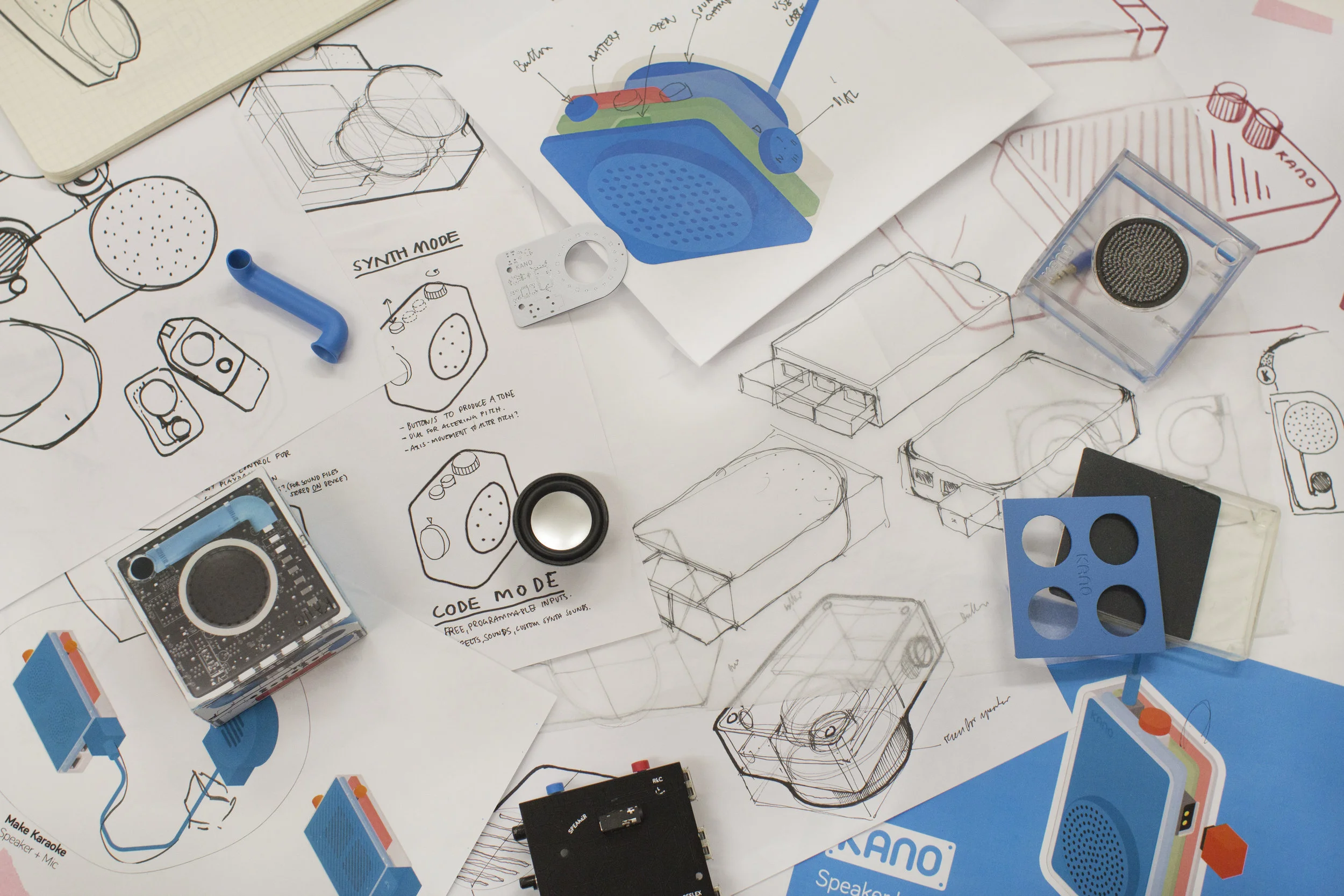 Since November I have been designing 4 new products with the rest of the in house design team at Kano and our design partners MAP project office – consisting of 3 new kits – Pixel, camera and speaker kit, as well as a series of sensors.