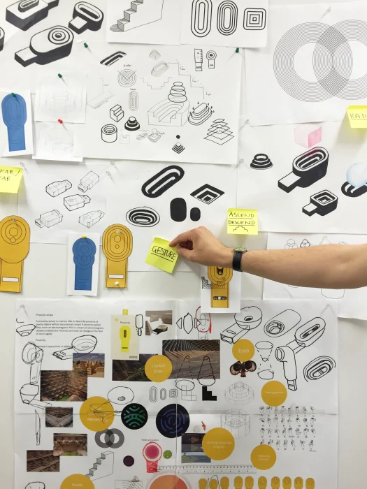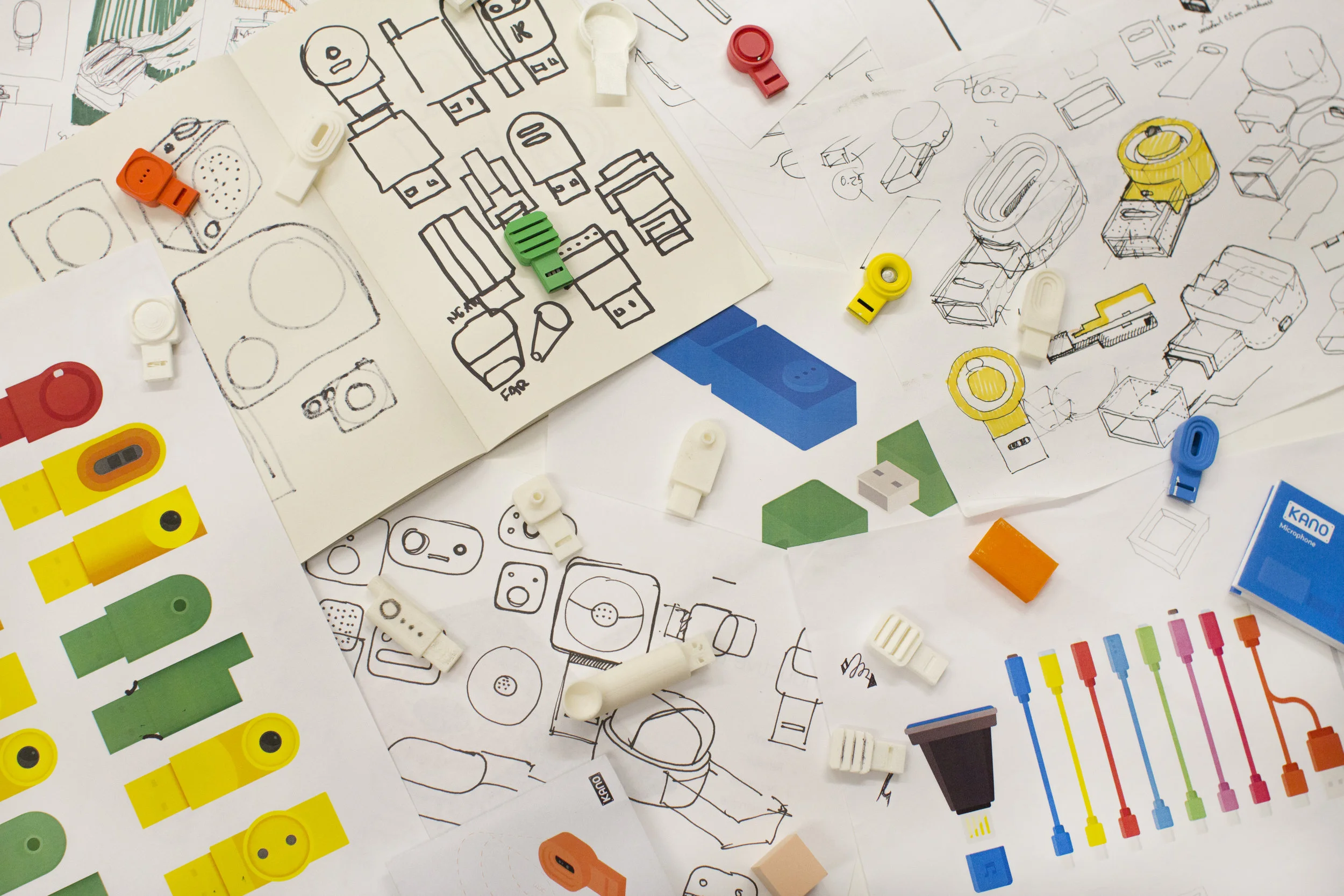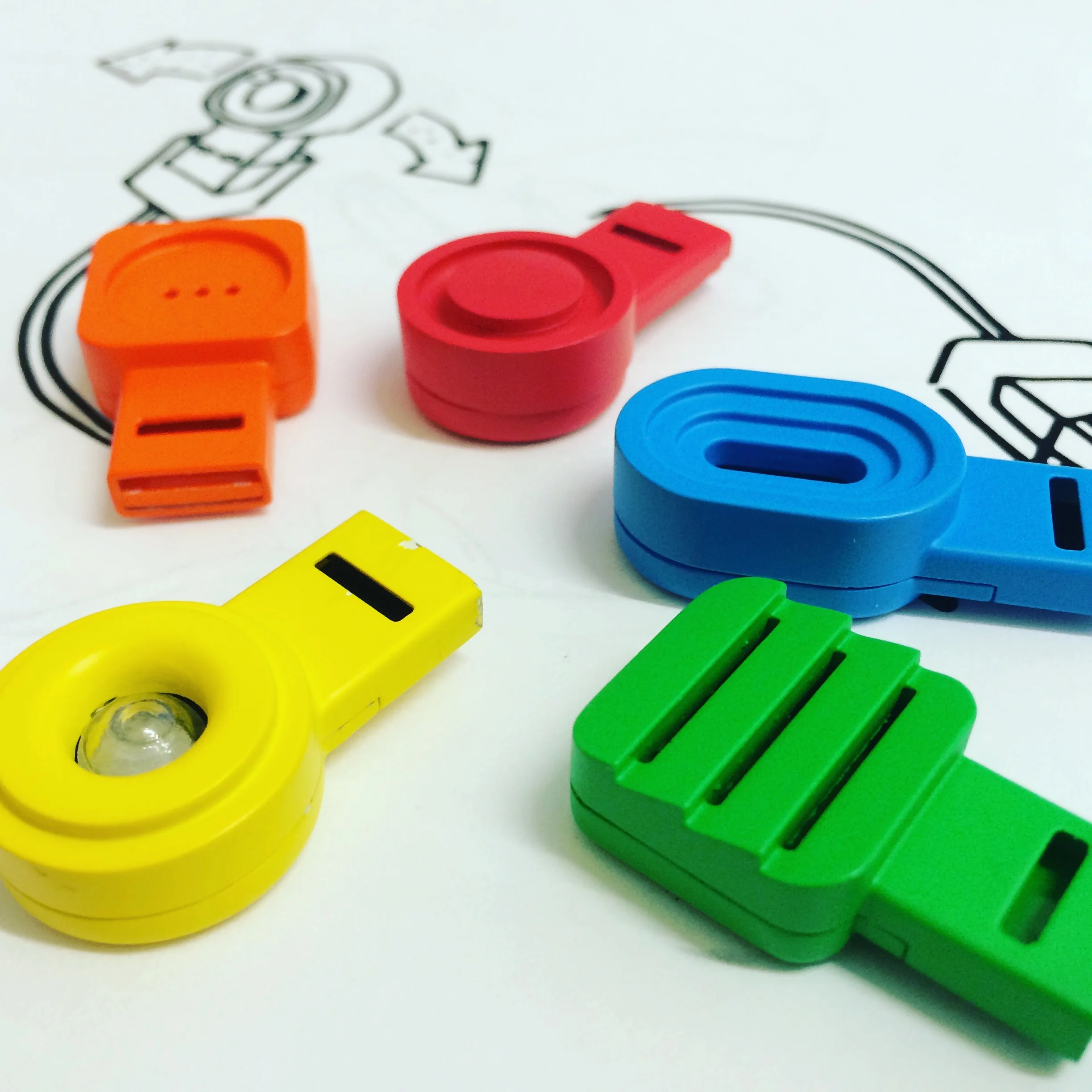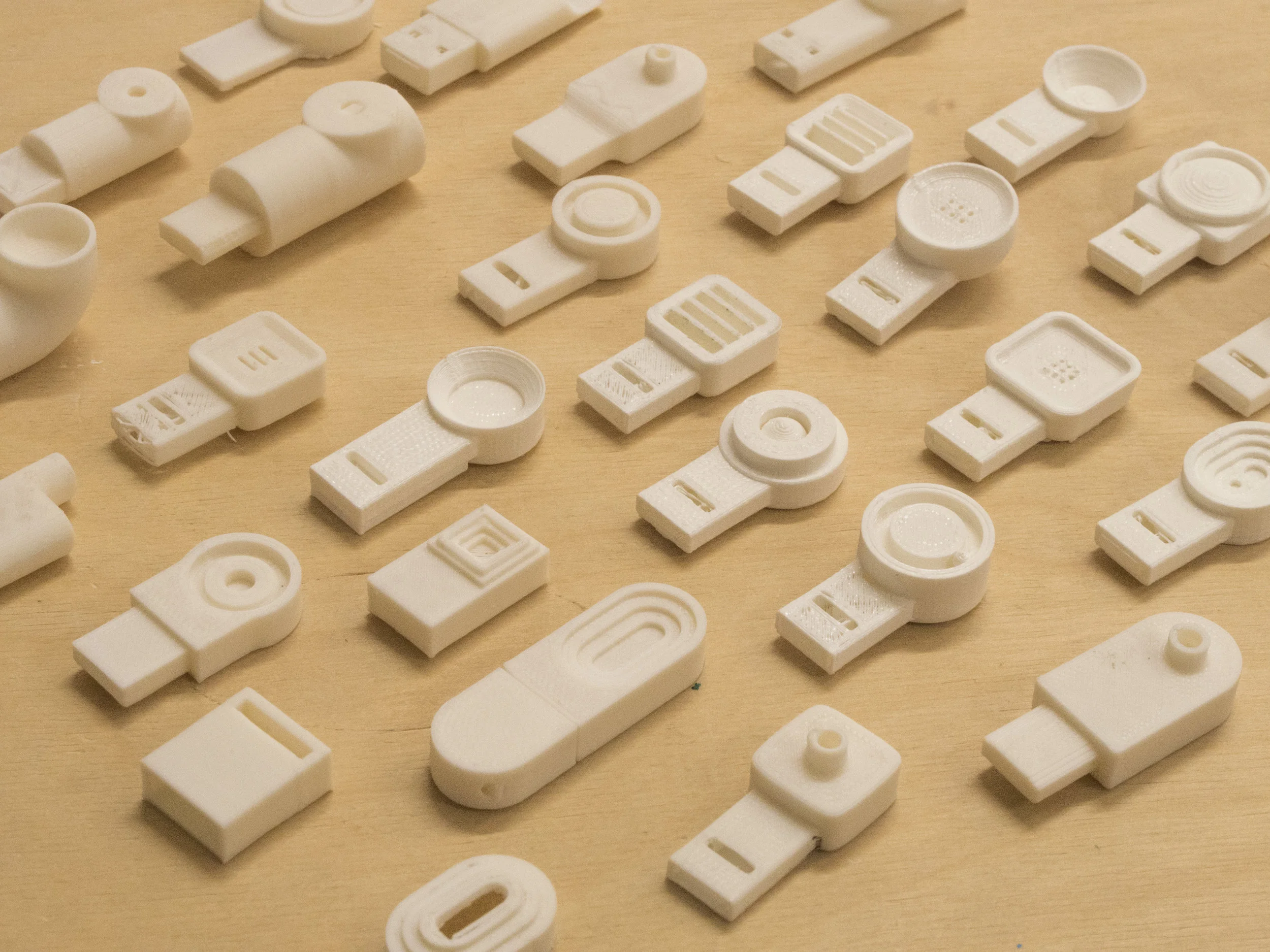 As Part of the new kits launched by Kano, I designed a family of 5 USB sensors. Designed to be a physical representation of their somewhat abstract individual functions, each sensor aims to create an identifiable form and typology for these invisible, but very much ‘everyday’, technologies. The Tilt sensor contains a gyroscope and accelerometer to measure movement and speed in each axis – represented here by a rolling ball bearing which also shows this movement. The Sound sensor is a microphone, and borrows its form from old telephones and voice input devices. The Tripwire is triggered by movement, over a 7m distance, across its optical reflective sensor – and is designed to resemble an eye – keeping a lookout for anything that crosses it’s path. The Air sensor reads temperature and humidity – and is designed to resemble and Air vent, taking in air and assessing its properties. Finally the Gesture sensor, which accurately reads the distance to whatever is in front of it and recognises hand gestures, is designed to represent rising and ascending through its stepped form, but also the waves of a radar – understanding the position of an object in relation to its sensor. These sensors are able to be used with any USB compatible device, including the Kano computer kit, new Kano kits as well as home computers and laptops.